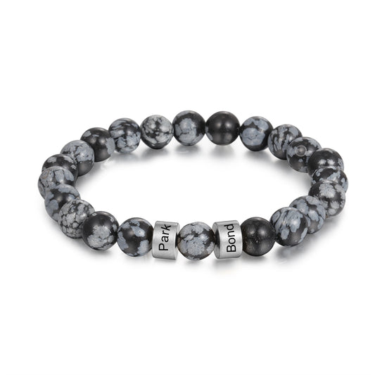 Personalized Stainless Steel Beaded Chain Name Engravd Bracelets for Men Customized Lava Tiger Eye Stone Bracelets Gifts for Him