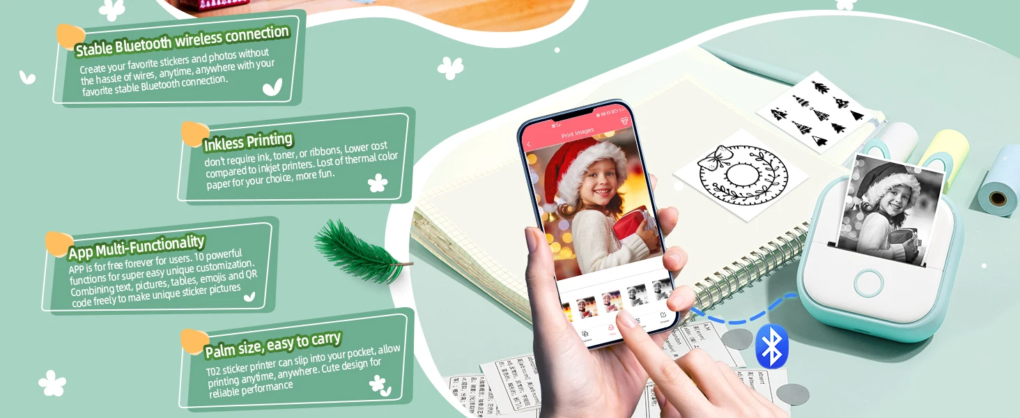 3. You can select the features in the APP to print many interesting text by connecting your phone to your phone via Bluetooth-Compatible.